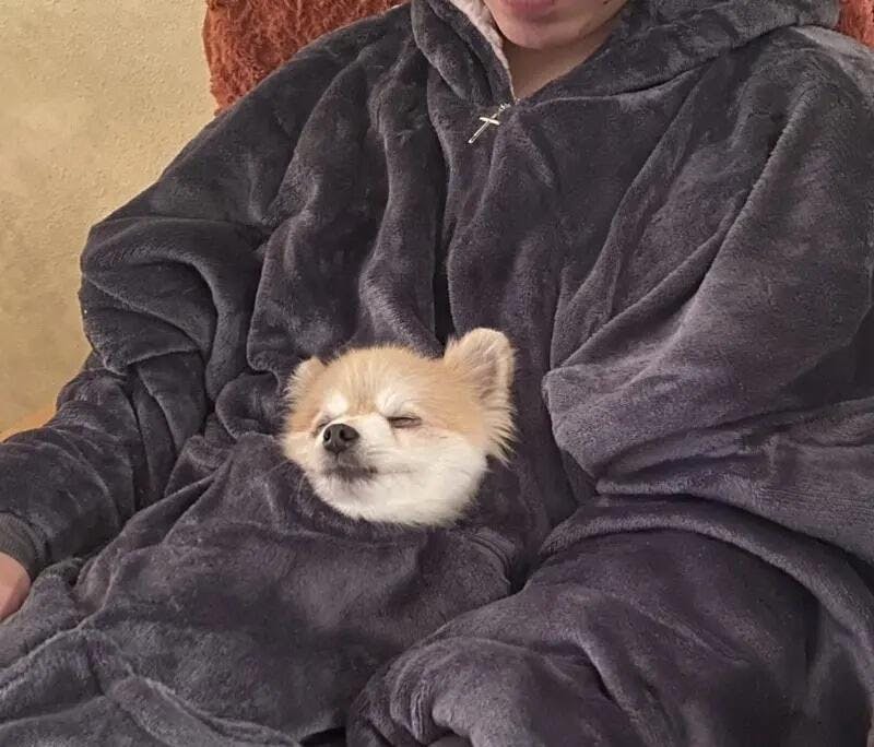 Nothing beats carrying my dog in the pouch while keeping snacks handy and Netflix queued up for later, thanks to my wify for the epic RooHood, feels dead cozy when I’m wrapped up in it.